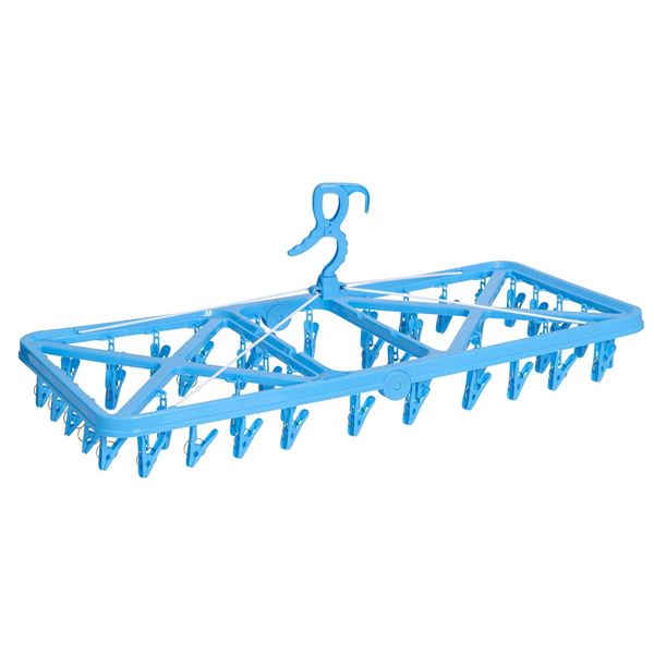 商品仕様: キャッチ式 洗濯物干し/角ハンガー 【44ピンチ ブルー 青 3個セット】 ポリプロピレン 軽量 断層式フレーム 〔ランドリー用品〕