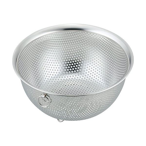 型崩れしにくく洗いやすい、パンチング加工のざる。底部分がシンクに直接触れず、置いたまま簡単に水切りできる足付きタイプ。