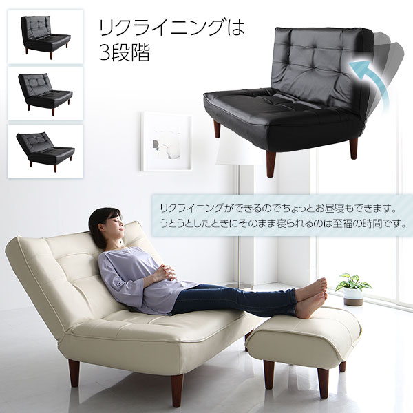 オットマンと組み合わせれば、さらにゆったりとくつろげるスペースに。リクライニングで少し倒してオットマンを使えば、気分は飛行機のファーストクラスです。