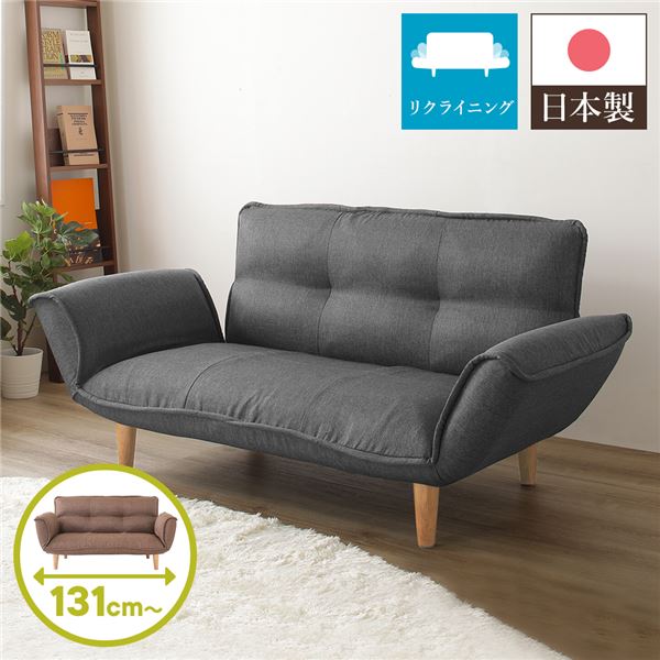 商品仕様: リクライニングソファー/カウチソファー 【2人掛け デニム調生地 アッシュグレー 灰色】 脚部:ナチュラル 日本製 肘付き 脚付き
