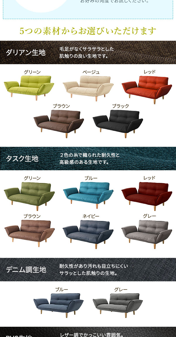 (キーワード: 高級 豪華 流行 くつろぎ 安らぎ リラックス ソファ ソファー リビング 応接 応接間 TCC502949 RDA0003589187 4823138 インテリア 寝具 ソファ ソファベッド ソファ 収納 ベッド 日本製 国産 のコンパクトな2人掛けソファ、リクライニング可能なフロアソファ 低い フロアタイプ ローソファ ロータイプ ー デニム調の