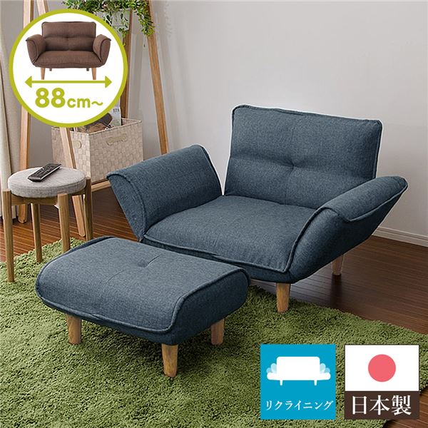 こちらは「日本製 リクライニングソファー/カウチソファー 【1人掛け オットマン付き インディゴブルー デニム調生地】 脚部:ナチュラル 幅88cm」の商品ページです。