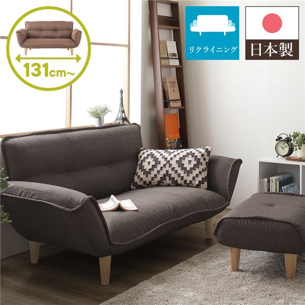 こちらは「日本製 リクライニングソファー/カウチソファー 【2人掛け オットマン付き ダリアン生地 ブラウン】 脚部:ナチュラル 幅130cm」の商品ページです。