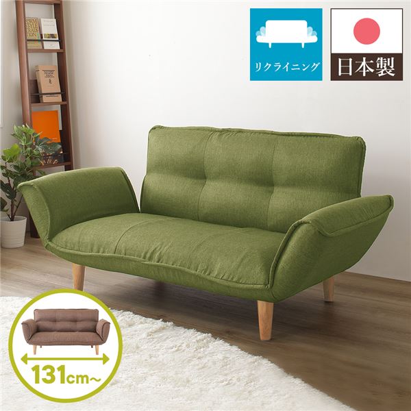 リクライニングソファー/カウチソファー 【2人掛け タスク生地 グリーン】 脚部:ナチュラル 日本製 国産 肘付き 脚付き 緑 送料無料