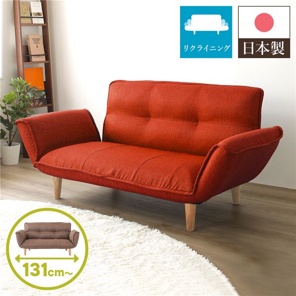 リクライニングソファー/カウチソファー 【2人掛け ダリアン生地 レッド】 脚部:ナチュラル 日本製 国産 肘付き 脚付き 赤 送料無料