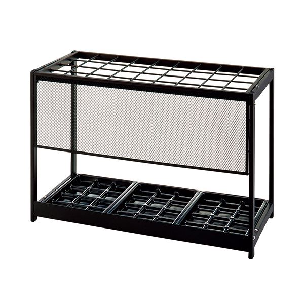 ●上部の格子フレームはW塗装(カチオン電着塗装+粉体塗装)で錆びにくい。36本用、ブラックの傘立て。