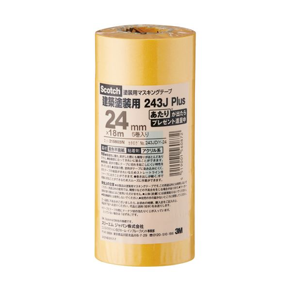 ペイントに最適な243J塗装用テープが50巻セットでお得に手に入る 作業効率もアップする高品質テープ、243JDIY-24CSがあなたの作業をサポートします 3M スコッチ マスキングテープ243J 塗装用 24mm×18m 243JDIY-24CS 1セット(50巻:5巻×10パック)