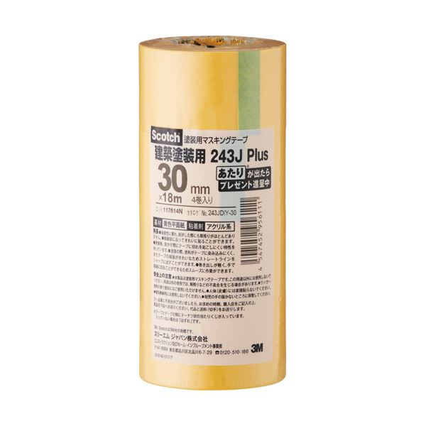 商品仕様: 3M スコッチ マスキングテープ243J 塗装用 30mm×18m 243JDIY-30CS 1セット(40巻:4巻×10パック)