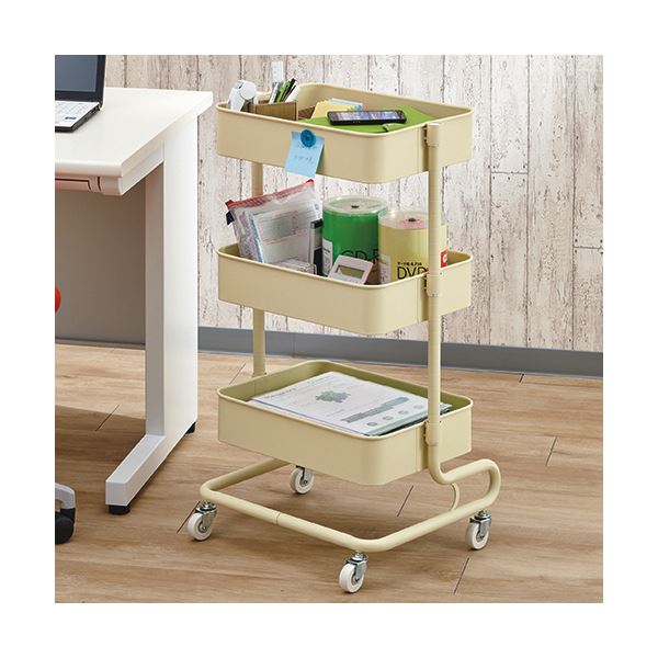 あらゆる場面で活躍する、移動が楽々な整理 収納 ワゴン 広さ460×奥行380×高さ810mmのアイボリー色、組み立て式のバスケットトローリー(LBT-3(IV))が1台で3セット 便利さを追求したキャスター付 移動可能 車輪付き きワゴンで、使い勝手も抜群 乳白色 あらゆる場面で活躍する、移動が楽々な整理 収納 ワゴン 広さ460×奥行380×高さ810mmのアイボリー色、組み立て式のバスケットトローリー(LBT-3(IV))が1台で3セット 便利さを追求したキャスター付 移動可能 車輪付き きワゴンで、使い勝手も抜群