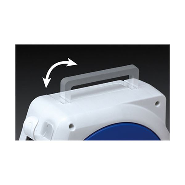 ●ノズル・蛇口側ホースも本体に収納でき、巻き取り用のハンドルも折りたためます。持ち運び用の取手も普段は折りたためます。