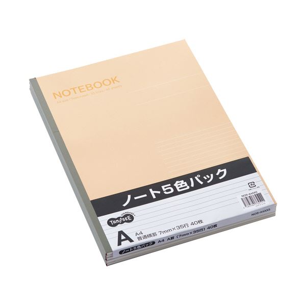 ●A4サイズ、A罫、40枚、スタンダードタイプのノートの5色パックです。