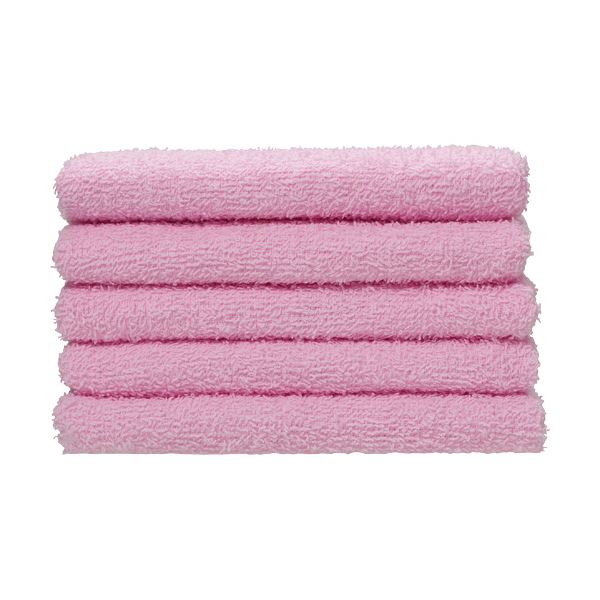 ●色はピンク、5枚入のフェイスタオルです。