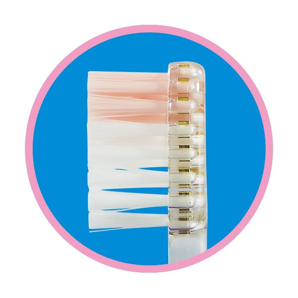 ●先端がかための植毛で、奥歯の奥や溝までしっかり磨けます。毛のかたさはやわらかめです。