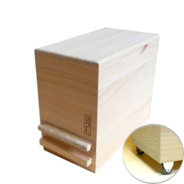 商品仕様: 桐製 米びつ/ライスストッカー 【5kgサイズ】 1合計量 無地 泉州留河 キャスター付き