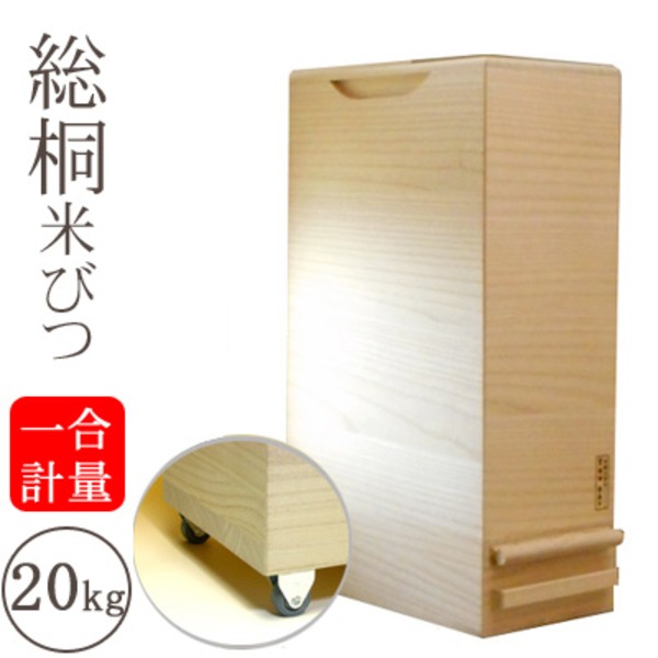 商品仕様: 桐製 米びつ/ライスストッカー 【20kgサイズ】 1合計量 キャスター付き 留河