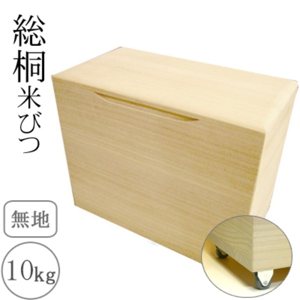 桐製米びつ 無地10kg キャスター付 移動可能 車輪付き き 収納力満点 便利な移動式木製米びつ 10kg 容量 無地デザイン 送料無料