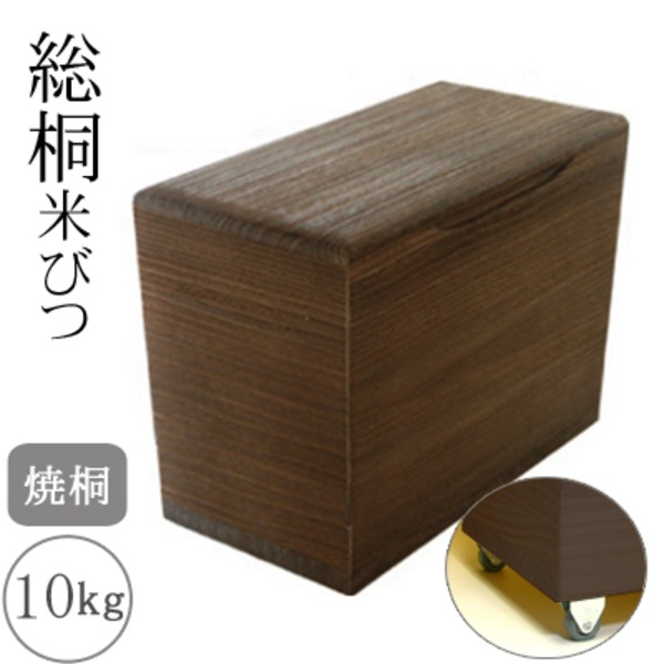 桐製米びつ 焼桐10kg キャスター付 移動可能 車輪付き き 美しき木の宝箱 焼桐製 10kg収納 キャスター付き 送料無料
