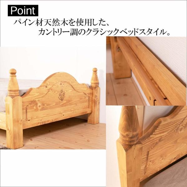 カントリーデザインの代表的なベッドフレーム。パイン材をふんだんに使った重厚感かつ細部にわたる加工、形状が一層、やさしいぬくもりを醸し出します。床板はすのこタイプで通気性にも考慮しています。