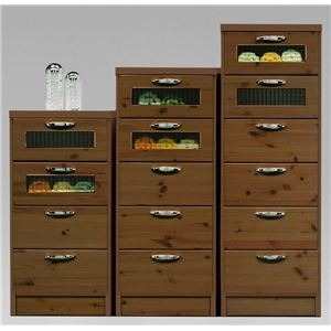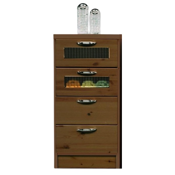 パイン材を使用したカントリー調チェスト。2色対応上段2段には小窓のはクロスペンガラス使用。引出しやすい金具取っ手付き