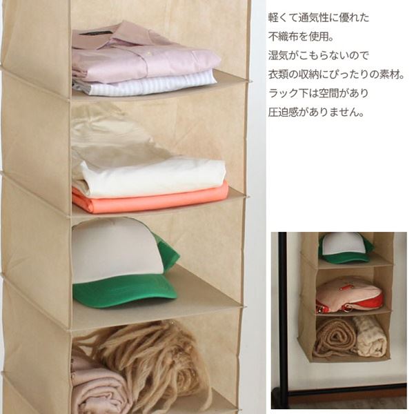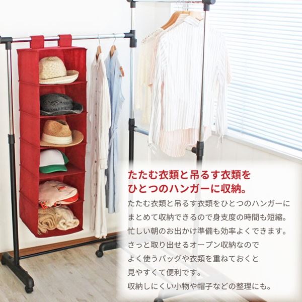クローゼットに吊るして、TシャツやYシャツ、セーターなどの衣服だけでなく、カバンや帽子などの収納にも最適。