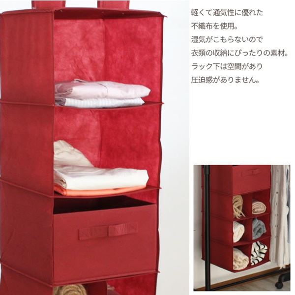 商品仕様: 衣類収納 9段 約幅31cm レッド 赤 パイプ 吊り下げタイプ 折りたたみ 吸湿性 通気性 軽量 不織布 ハンガーラック クローゼット