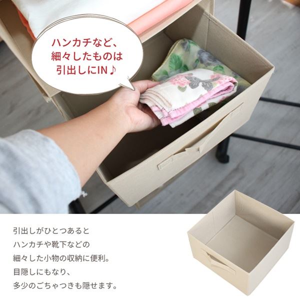 クローゼットに吊るして、TシャツやYシャツ、セーターなどの衣服だけでなく、カバンや帽子などの収納にも最適。