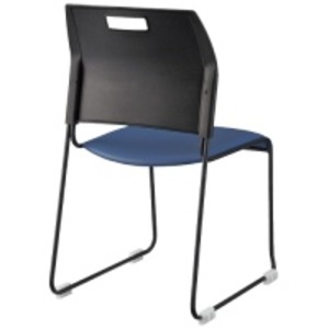 コンパクトでシャープなスタッキングチェア。W1800のミーティングテーブルにも納め易いサイズです。背には持ち運びに便利な手掛け穴。