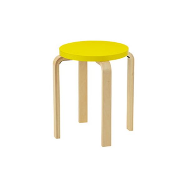 木のぬくもりを感じるシンプルな木製丸椅子。座面は明るいイエローカラー。重ねてコンパクトに収納できるスタッキング機能付き。4脚までスタッキングできます。リフレッシュスペースや食堂などにも置ける作業用チェアです。※シートハイ300mmタイプもあります(ナチュラル色のみ)