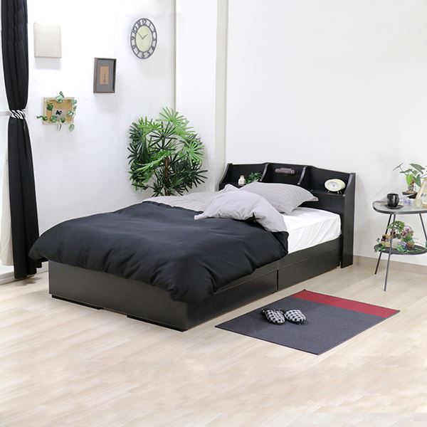 商品仕様: ベッド 日本製 国産 黒 ブラック ダブルベッド マットレスセット ポケットコイル 収納付き 引き出し付き 棚付き 宮付き コンセント付き 照明付き ダブルベッド