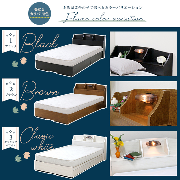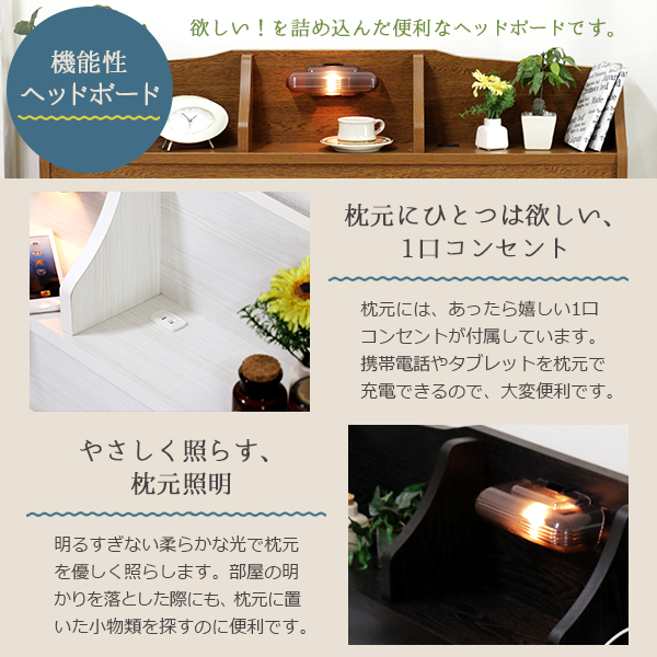 照明 コンセント 引出し付き 収納ベッド