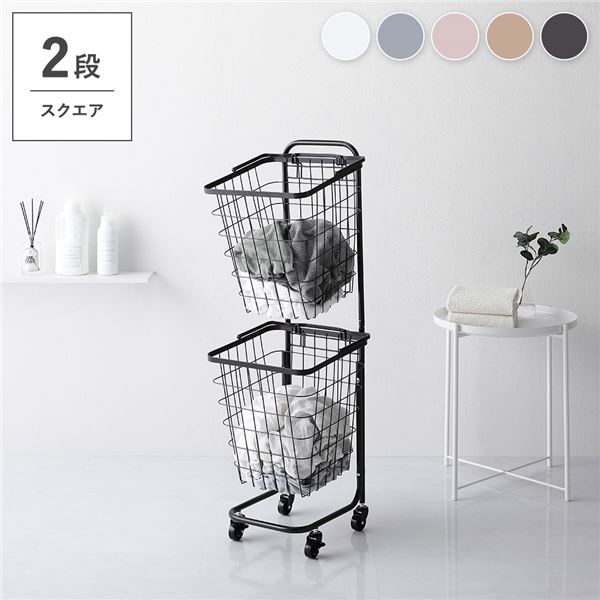 商品仕様: ランドリーラック 2段 ダークブラウン 茶 こげ茶 スクエアタイプ 角型 着脱式 洗濯かご キャスター付 ランドリーバスケット 組立式