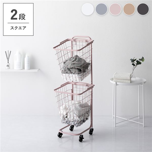 ランドリーラック 2段 スモーキーピンク スクエアタイプ 角型 着脱式 洗濯かご キャスター付 移動可能 車輪付き ランドリーバスケット 組立式 送料無料