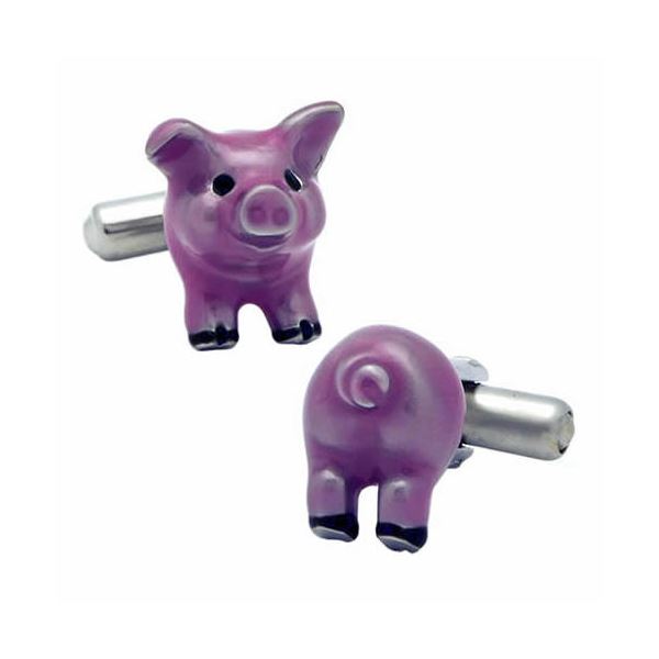 ピンクの子豚をモチーフにしたカフスボタン。