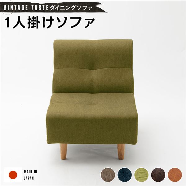 ダイニングソファー/ローソファ 低い フロアタイプ ロータイプ フロアソファ ー 【1人掛け グリーン・ナチュラル脚】 ファブリック生地 日本製 国産 緑 送料無料