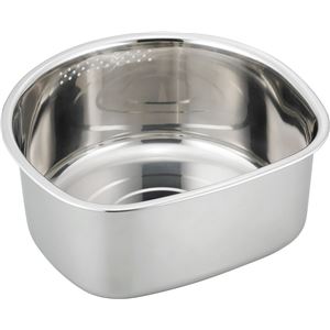扱いやすいステンレス製でD型の洗いおけ。野菜や食器などのつけ置き洗いなどに便利です。