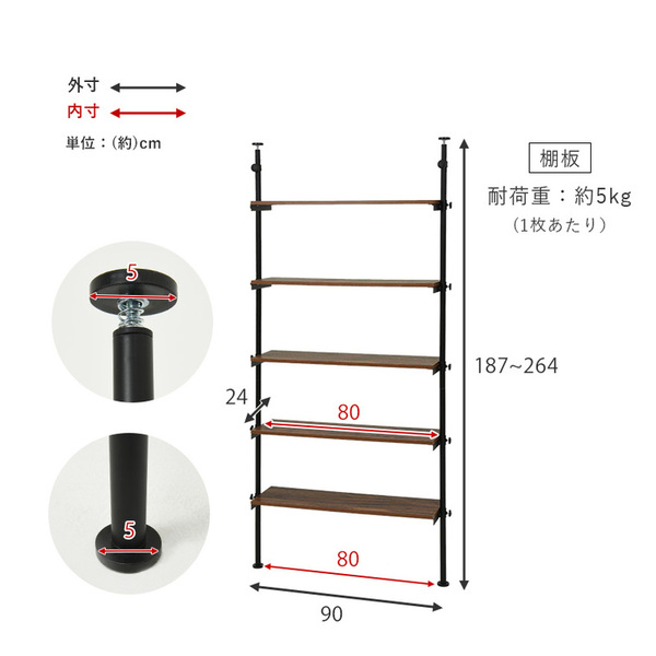 ■商品サイズ(外寸):(約)幅90×奥行24×高さ187〜264cm