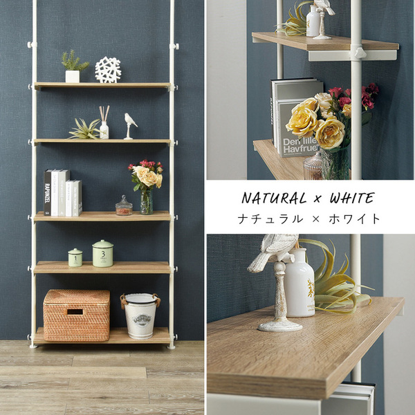 商品仕様: オープンラック 幅90cm ホワイト 白 棚板5枚 スチール シェルフ フリーラック 省スペース 突っ張りラック お客様組立品 リビング