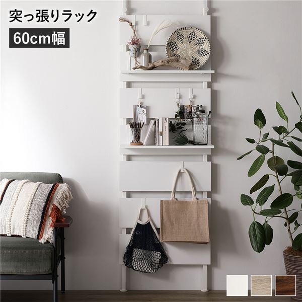 壁面 突っ張り ウォールラック 幅60cm ホワイト 棚板2枚 フック7個付き 壁面整理 収納 賃貸OK 玄関 リビング ダイニング 白 送料無料