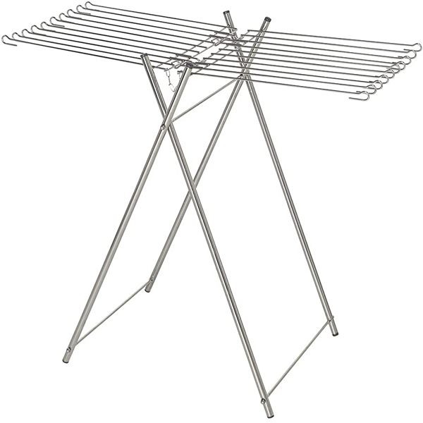 ステンレス製のタオルスタンド。タオルが最大20枚干せる。錆びに強く耐久性抜群。