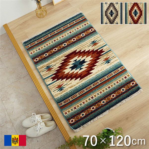 玄関マット ウィルトン織 キリム柄 ベッドサイド用 ソファー前用 フリンジ付き 約70×120cm レッド 赤 送料無料