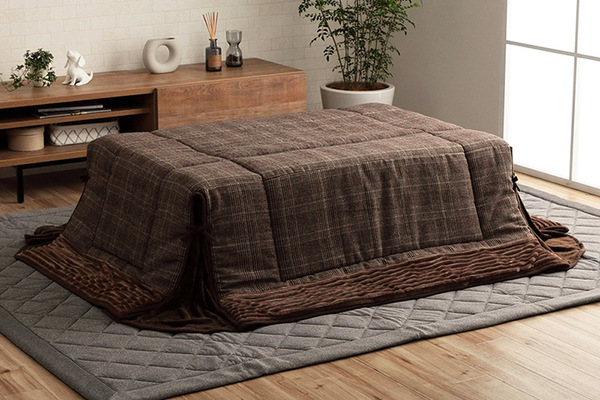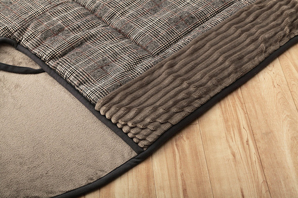 省スペースながらも快適なこたつ布団 ブラウンのチェック柄がお部屋に温かさをプラス 広々とした約180×220cmのサ