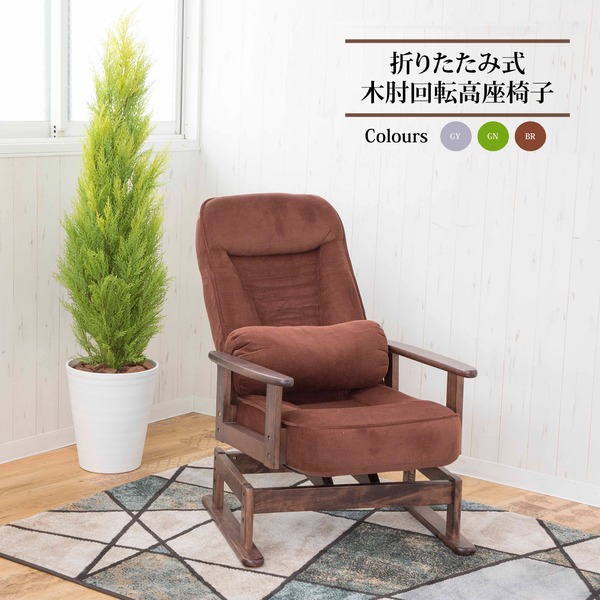 折たたみ式 木肘回転高座椅子(ブラウン)