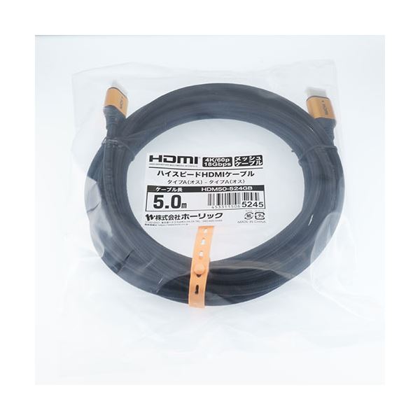 商品仕様: ホーリック HDMIケーブル 5m メッシュケーブル ゴールド HDM50-524GB