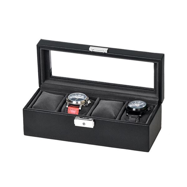 美しさと安心 安全 を兼ね備えた、鍵付きコレクションボックス エレガントな合皮 フェイクレザー 素材で、4本の腕時計を保管 時計整理 収納 ケースSE83520BK エスプリマ 合皮 フェイクレザー 4本 時計整理 収納 ケース SE83520BK