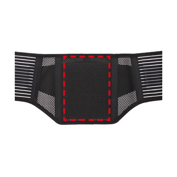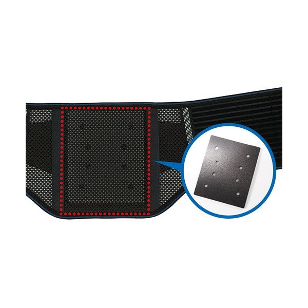 ●大判姿勢保持プレートが腰椎を幅広くサポートして、腰部を保護。