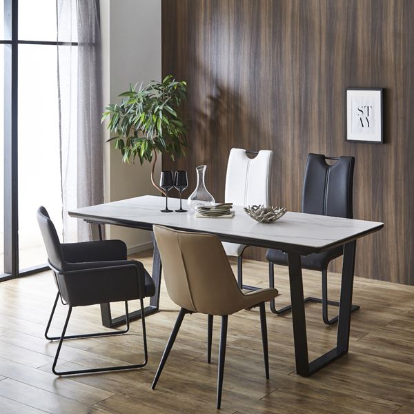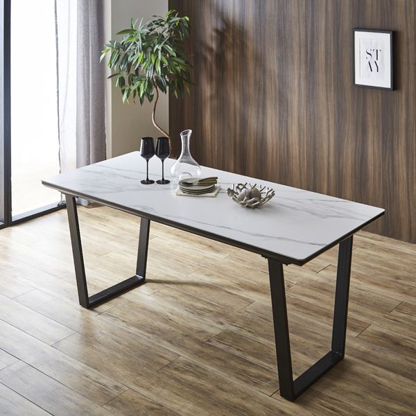 商品仕様: ダイニングテーブル 幅約180cm ホワイト 白 セラミック スチール脚 お手入れ簡単 リビング ダイニング インテリア家具