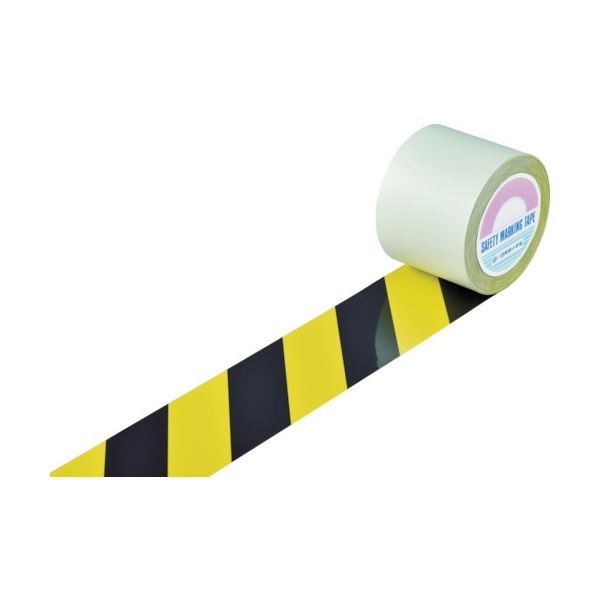 簡単設置 はく離紙付きで使いやすい 目立つ黄色とトラ柄で安全 安心 確保 幅広100mm×長さ20mのガードテープ 日本緑十字社 ガードテープ(ラインテープ) 黄/黒(トラ柄) 100mm幅×20m 148162 1巻