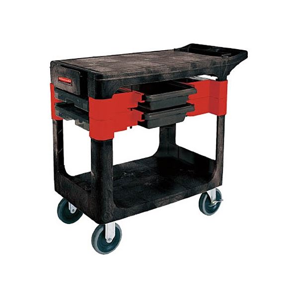 整理 収納 の達人 4分割ボックス搭載の便利カートが登場 整理整頓がラクラク 6180-BLA ニューウェル・ラバーメイド・ジャパン エレクター トレードカート 6180-BLA 1台