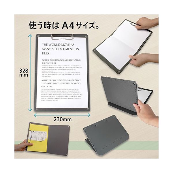 持ち運びも簡単 使う時だけ大きく広げられる 便利な折りたたみクリップボードセット A4サイズのダークグレーで