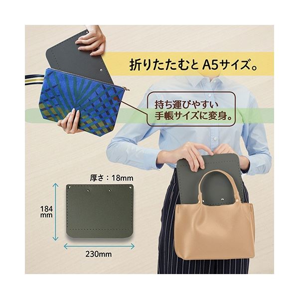 ●使うときはA4、折りたたむとA5になって持ち運びしやすいクリップボード、色はダークグレーです。